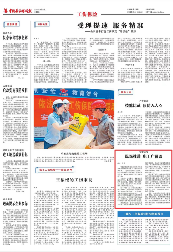 2024年9月10日,《中国劳动保障报》报道我市工伤预防工作,全文如下: