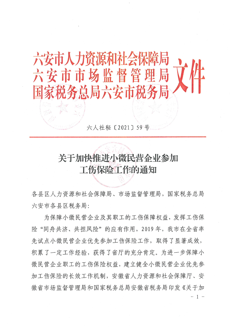 关于加快推进小微民营企业参加工伤保险工作的通知