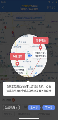 进入地图模式后,系统将获取您的地理位置,实时显示周边最近的服务大厅和自助网点: