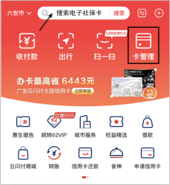 1打开云闪付APP,在云闪付APP首页“卡管理”选择电子社保卡或者在搜索栏输入“电子社保卡”,进入电子社保卡首页(若还未申领电子社保卡,需按提醒先申领电子社保卡)。