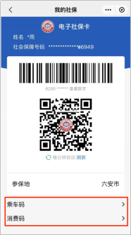 2选择电子社保码,根据使用场景选择下方“乘车码”或“消费码”展码使用(电子社保卡未绑定银行账户的,需要先绑定社保卡银行账户才能使用乘车码、消费码)。