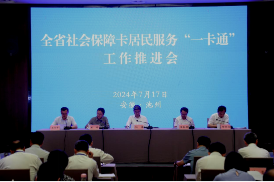 近日,安徽省召开全省社会保障卡居民服务“一卡通”工作推进会,省人民政府副省长孙勇出席并讲话,省人民政府副秘书长、一级巡视员汪春明主持会议。胡雪松副市长代表六安市市政府就“创新建设‘一卡通’示范镇工作”作交流发言。