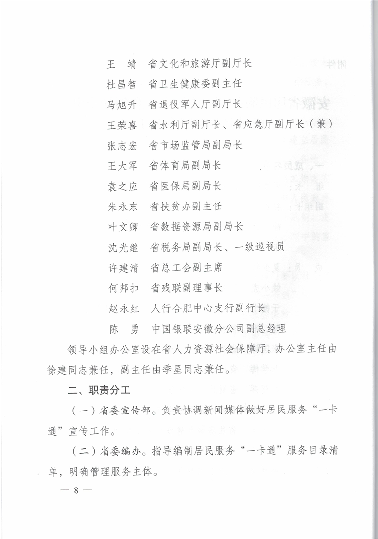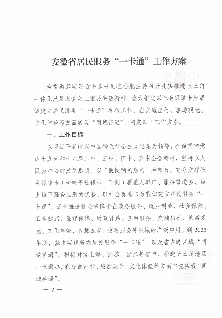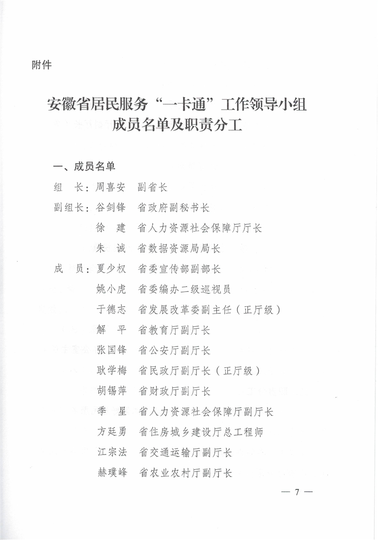 安徽省人民政府办公厅关于印发安徽省居民服务“一卡通”工作方案的通知