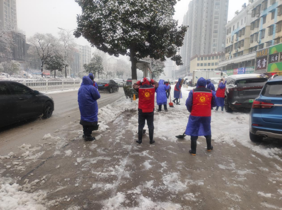 为积极响应上级抗雪减灾救灾的工作号召,市人社局同步迅速组织近50名党员志愿者深入包保路段(解放路至磨子潭路)开展铲冰除雪行动。虽然天气寒冷,志愿者们仍然热情高涨,大家拿着扫帚、铁锹等工具迅速投入工作,在人行道以及车辆容易打滑的拐弯处和路口,认真铲冰除雪。经过近3个小时的劳动,包保路段道路的积雪全部清扫干净,消除了安全隐患。