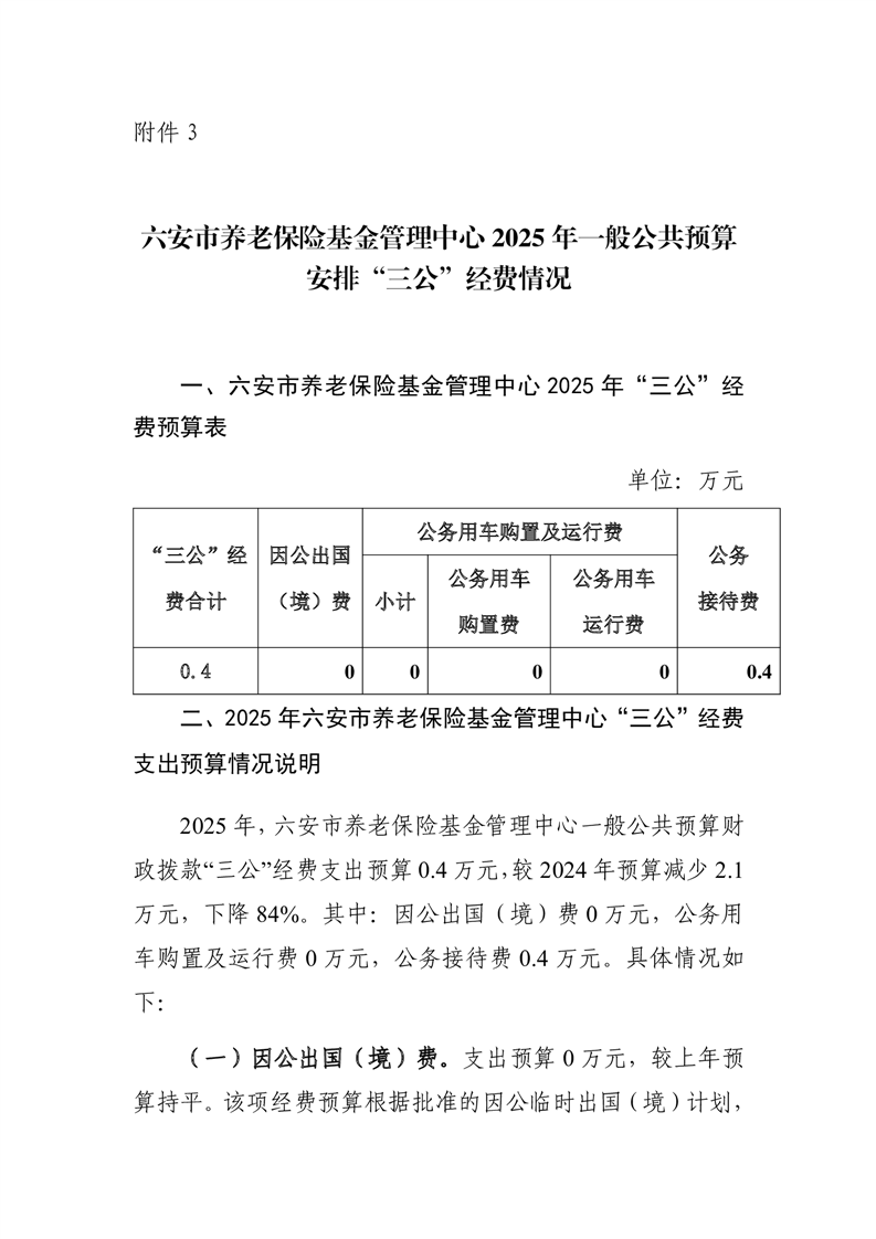 六安市养老保险基金管理中心2025年一般公共预算安排“三公”经费情况